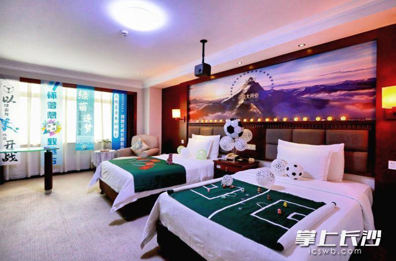 长沙晚报掌上长沙12月8日讯(全媒体记者 宁莎鸥)为积极响应全省促消费号召,推动体育赛事与文旅消费深度融合,在备受瞩目的2025湖南省足球联赛(简称“湘超”联赛)火热进行之际,全省酒店行业联动开展“激情湘超,湘宿相伴”活动。本次活动由湖南省文化和旅游厅主办、各市州文化旅游广电(体育)局、湖南省旅游饭店协会承办,联合近百家酒店共同打造沉浸式观赛消费场景,通过场景创新、服务升级、优惠让利三大维度,为球队、球迷及游客提供“观赛+住宿+文旅”一站式体验,进一步释放赛事流量,激活住宿与文旅消费潜力。场景营造:从氛围布置到主题空间全面升级赛事期间,长沙通程国际大酒店、株洲华天大酒店、湘潭华都国际大酒店、湘潭华银国际大酒店、益阳碧桂园凤凰酒店等进行氛围刷新,在大堂、走廊、餐厅等公共区域增设湘超赛事主题装饰,包括巨幅赛事海报、球队应援灯箱、足球元素灯光秀、签名墙、湘超周边展示区等,营造出浓厚的赛事氛围。多家酒店还专门设置“湘超打卡互动区”,配备赛事主题相框、足球道具等,吸引球迷拍照分享,并可凭打卡记录兑换餐饮折扣等权益。针对球迷群体的深度需求,湖南金源阳光酒店、君逸康年大酒店、岳阳泰和大酒店等推出“足球主题客房”,房间内配备球队主题床品、定制足球抱枕,并确保赛事实时转播畅通。在关键场次期间,湖南鑫利大酒店、祁阳源福温德姆酒店、常德柳园锦江酒店等设立“第二观赛场”,利用餐厅、会议室等空间配备专业影音设备,提供特色小食与饮品套餐,打造沉浸式观赛体验。此外,作为湘超参赛球队官方接待酒店,张家界华天大酒店、郴州奥米茄大酒店、怀化皇冠假日酒店等还提供个性化接待服务,全方位提升球队入住体验。