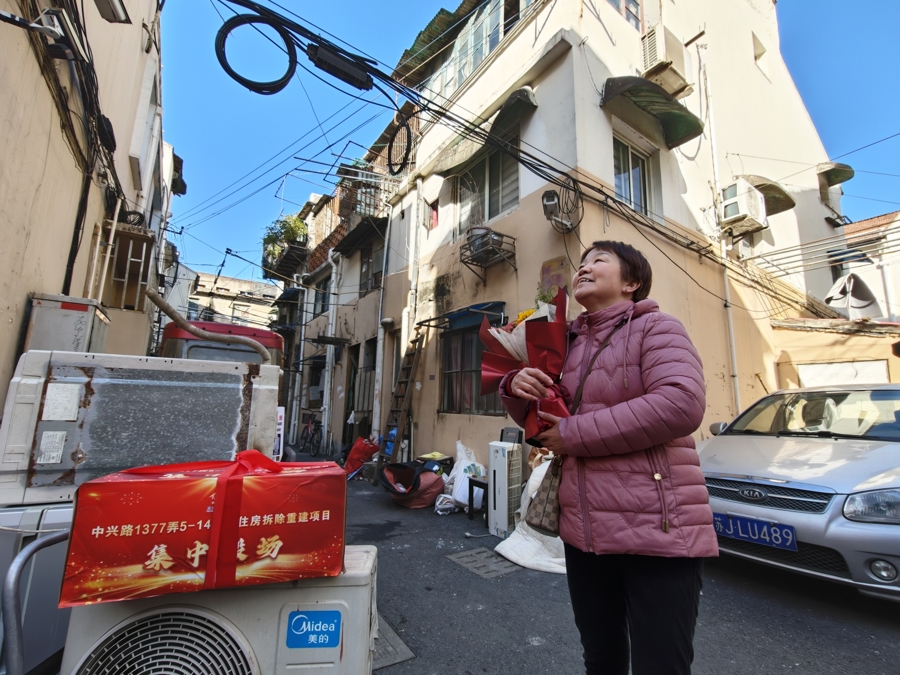 “盼了这么多年,终于要搬家、迎接新生活了!”今天9时15分许,寒意袭人。静安区芷江西路街道中兴路1377弄小区门口却暖意融融、喜气洋洋。73岁的施利玉接过鲜花,带着提前打包好的行李登上了扎着大红绸花的搬场车,激动的心情溢于言表。
